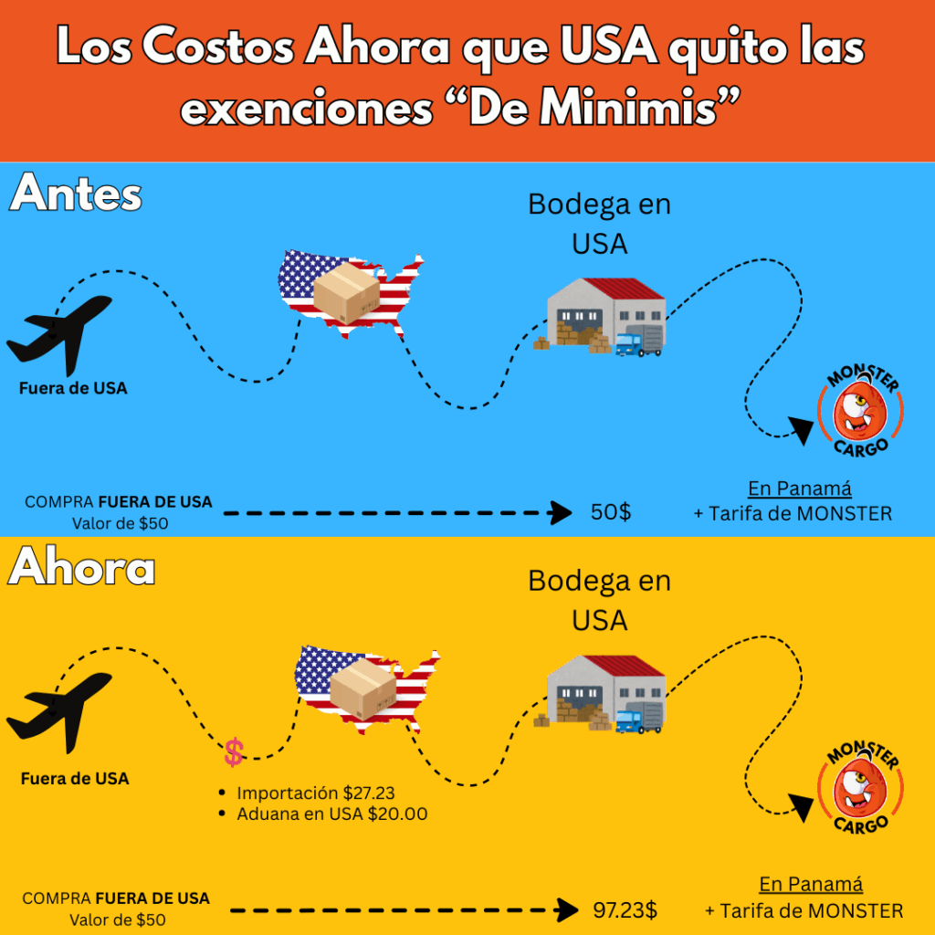 Tenemos una noticia importante sobre los envíos a nuestra bodega en Miami. El gobierno de Estados Unidos ha eliminado la ley que permitía que las importaciones de menos de $800 no pagaran impuestos.